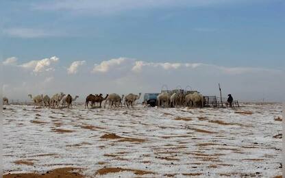 Nevicata storica in Arabia Saudita: dune e cammelli imbiancati. VIDEO Mondo Le immagini suggestive di un'insolita nevicata sul deserto della regione di Al Jawf hanno fatto... 13 nov - 09:32