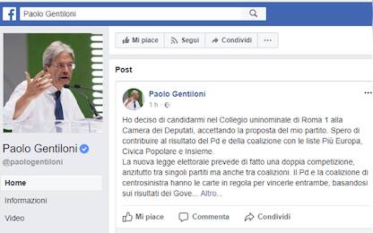 Elezioni, Gentiloni: "Mi candido a Roma". Ufficiale accordo Pd-Bonino Politica Il premier su Facebook: “Mi candido nel collegio Roma1, in una delle aree più belle e amate del... 20 gen - 15:46