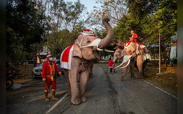 Thailandia, elefanti vestiti da Babbo Natale portano regali ai bambini Mondo Elefanti vestiti da Babbo Natale arrivano alla scuola elementare Jirasat Wittaya in Thailandia... 24 dic - 11:36 10 foto