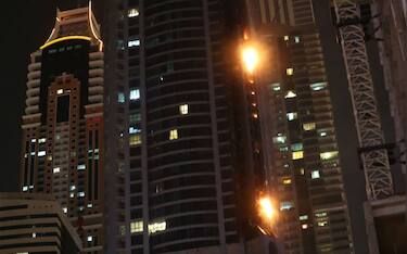Un immenso getto di acqua alto 108 metri sgorga direttamente dal vetro del Liebien Building, nel...