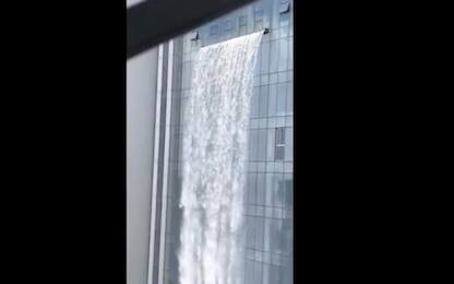 Cina, la cascata artificiale più alta al mondo sbuca da un grattacielo