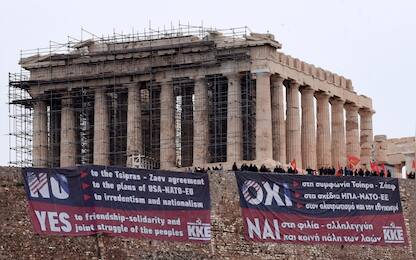 Atene, proteste per accordo su Macedonia Mondo Proteste del partito comunista greco tra le colonne del Partenone in vista del dibattito... 24 gen - 12:16 4 foto