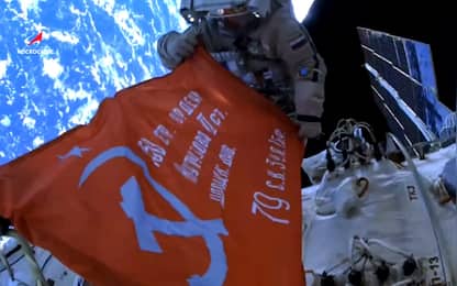 Iss, cosmonauti russi espongono stendardo Vittoria Urss nello spazio Mondo Durante la loro passeggiata nello spazio, Oleg Artemyev e Denis Matveyev hanno mostrato una... 29 apr - 07:28