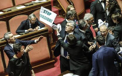 Ius soli, bagarre in Senato Politica Il provvedimento approda in Aula e scatena le contestazioni della Lega Nord. Il capogruppo... 15 giu - 14:39 9 foto