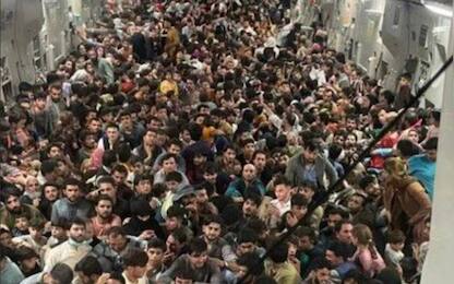 Fuga da Kabul, la foto: centinaia di afghani stipati su un aereo Mondo Seicentoquaranta civili sono partiti per il Qatar a bordo del C-17 Globemaster, velivolo militare... 17 ago - 13:20