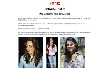The Crown, al via il casting per il personaggio di Kate Middleton Serie TV Netflix ha lanciato in maniera ufficiale la ricerca dell'interprete che avrà l'onore di... 27 apr - 11:01