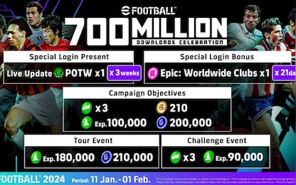 700 milioni di download per eFootball, la campagna in-game di Konami Tecnologia Dall'11 gennaio al primo di febbraio sarà possibile riscattare come premio log-in uno speciale... 11 gen - 11:28