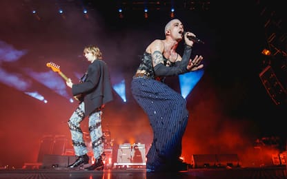 Damiano David suona a Roma con gli altri Maneskin sotto il palco