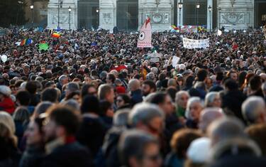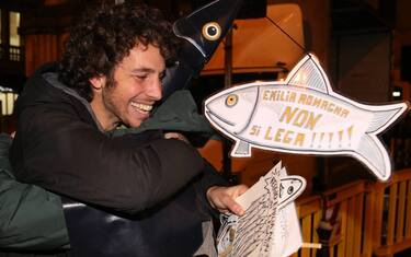 Uno dei quattro fondatori del movimento delle sardine durante la conferenza di...