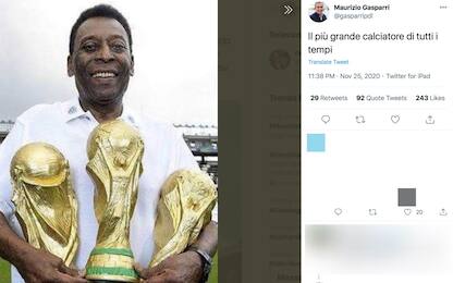Maradona, Gasparri pubblica foto di Pelé su Twitter: bufera sui social Sport L'esponente di Forza Italia, dopo la morte del campione argentino, ha pubblicato un post in cui... 26 nov - 14:45