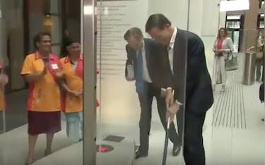 Gli cade il caffè a terra: il premier olandese pulisce il pavimento Mondo La scena, diffusa su Twitter, mostra il primo ministro Mark Rutte alle prese con lo scopettone... 06 giu - 14:57