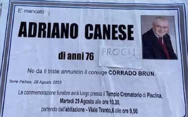 Torino, manifesto funebre imbrattato con scritte omofobe Piemonte L'episodio è avvenuto a Torre Pellice, in provincia di Torino, sul manifesto funebre di Adriano... 30 ago - 07:13