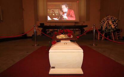 Milano rende omaggio al celebre giornalista e critico d'arte. Sulla bara bianca sono stati...
