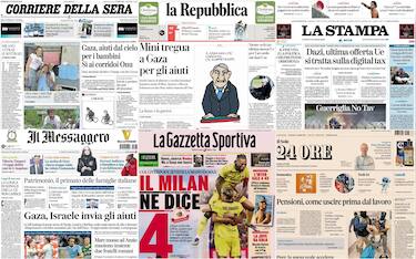 Le prime pagine dei quotidiani di oggi 20 luglio: la rassegna stampa Cronaca Sulle aperture dei giornali ampio spazio alla nuova strage di civili a Gaza: 100 i morti, decine... 20 lug - 08:00 16 foto
