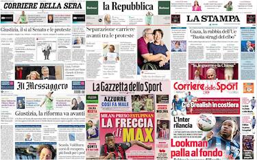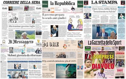 Le prime pagine dei quotidiani di oggi 23 luglio: la rassegna stampa Cronaca Sono la riforma della Giustizia e l'orrore di Gaza i principali temi con cui scelgono di aprire i... 23 lug - 07:09 13 foto