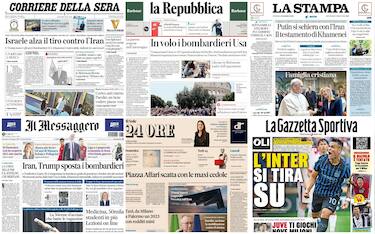 Le prime pagine dei quotidiani di oggi 20 giugno: la rassegna stampa Cronaca Conflitto tra Israele e Iran ancora protagonista delle aperture dei giornali. Grande spazio alle... 20 giu - 07:01 13 foto