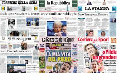 Le prime pagine dei quotidiani di oggi 26 giugno: la rassegna stampa Cronaca L'aumento della spesa militare al 5% decretato dal vertice Nato domina le aperture dei giornali... 26 giu - 07:02 13 foto
