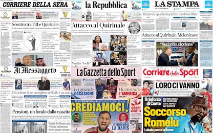 Le prime pagine dei quotidiani di oggi 20 novembre: la rassegna stampa Cronaca Il faccia a faccia tra Meloni e Mattarella dopo l'attacco al Colle di Fratelli d'Italia, il piano... 20 nov - 07:28 16 foto