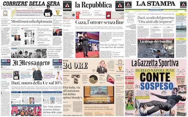 Le prime pagine dei quotidiani di oggi 22 maggio: la rassegna stampa Cronaca È ancora il Medio Oriente a dominare le aperture dei giornali, con l'affondo di Netanyahu su Gaza... 22 mag - 07:08 13 foto
