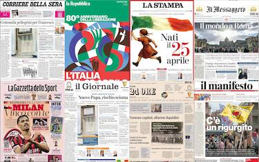 Le prime pagine dei quotidiani di oggi 25 aprile: la rassegna stampa Cronaca Le aperture dei giornali di oggi sono divise: alcune puntano sui pellegrini arrivati a Roma per... 25 apr - 08:07 16 foto