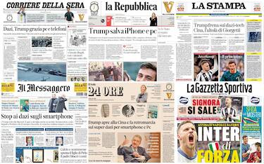Le prime pagine dei quotidiani di oggi 7 aprile: la rassegna stampa Cronaca Dazi ancora protagonisti sulle aperture dei principali giornali, col pressing crescente negli Usa... 07 apr - 07:02 13 foto