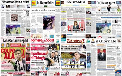 Le prime pagine dei quotidiani di oggi 5 dicembre: la rassegna stampa Cronaca La crisi del governo in Francia è al centro delle prime pagine dei quotidiani di oggi: dopo soli... 05 dic - 07:29 16 foto