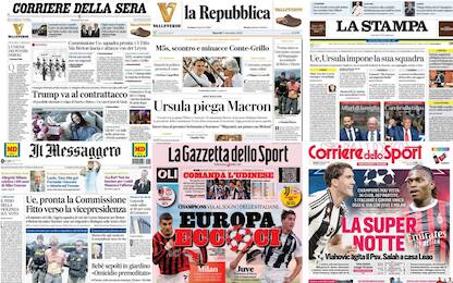 Le prime pagine dei quotidiani di oggi 18 settembre: rassegna stampa Cronaca La nuova squadra della Commissione Ue presentata da Ursula von der Leyen con Fitto tra i... 18 set - 07:10 16 foto