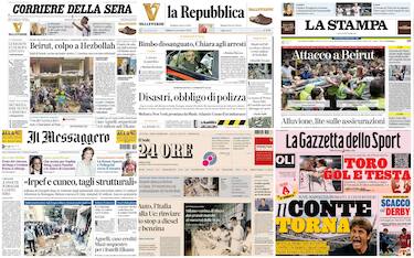 Le prime pagine dei quotidiani di oggi 21 settembre: rassegna stampa Cronaca Le aperture dei giornali sono dedicate principalmente al raid israeliano a Beirut, con la morte... 21 set - 07:55 16 foto