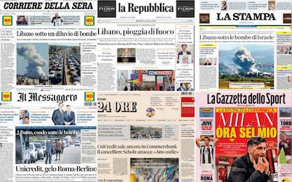 Le prime pagine dei quotidiani di oggi 23 settembre: rassegna stampa Cronaca La crisi in Medioriente, con l'escalation degli scontri tra Israele e Hezbollah, il piano del... 23 set - 07:02 13 foto