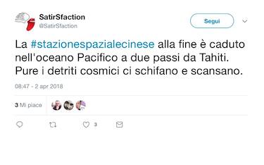 L’ironia per la stazione spaziale Scienze Dopo i timori dei giorni scorsi, Tiangong-1 è caduta nell’Oceano Pacifico. Tanti gli utenti... 02 apr - 09:42 14 foto