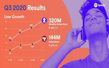 Spotify, superati i 300 milioni di utenti mensili attivi Tecnologia E’ il dato che il colosso scandinavo della musica in streaming ha comunicato, relativo al terzo... 30 ott - 09:25