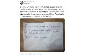 “Ho rotto la sua pianta, ecco 5 euro”: biglietto del bambino è virale Cronaca La storia di un 11enne che ha lasciato un messaggio e un “risarcimento” dopo aver colpito un vaso... 18 giu - 20:25