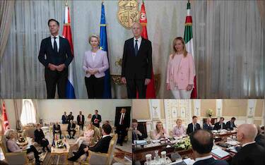 Immigrazione, Meloni con Ue a Tunisi: "Soddisfatti per il documento" Politica La presidente del Consiglio - con la presidente della Commissione europea Ursula von der Leyen e... 11 giu - 19:40 15 foto