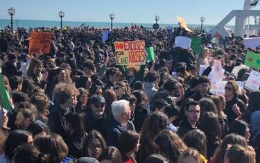 (ANSA) - BARI, 15 MAR - Diverse migliaia di persone, almeno 6.000 secondo la questura, partecipano al corteo partito da piazza Diaz a Bari per il Global Strike For Future degli studenti che oggi riempirà le piazza e le strade di tutto il mondo. Apre il corteo la fanfara della scuola media "Massari Galilei" di Bari. L'ampia piazza sul mare si è riempita rapidamente che il lungomare è stato chiuso al traffico prima che il corteo partisse. "Non cambiare il clima, cambia le tue abitudini", "dai una possibilità al futuro", "non c'è un pianeta B" sono solo alcune delle scritte sui cartelli sollevati da bambini, adolescenti e universitari provenienti da tutta la regione. In Puglia sono 11 le piazze che hanno aderito a Fridays For Future: San Severo, Manfredonia, Andria, Trani, Altamura, Bari, Monopoli, Taranto, Ostuni, Brindisi e Lecce.Il corto barese, dopo avere percorso il Lungomare in direzione del centro cittadino, percorrerà corso Vittorio Emanuele e arriverà in piazza Prefettura.