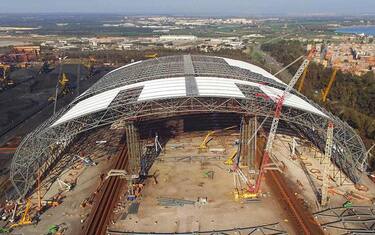 (ANSA) - TARANTO, 05 APR - È stato costruito, con dieci giorni di anticipo, il terzo arco della copertura dei parchi minerali dello stabilimento siderurgico ArcelorMital (ex Ilva) Taranto. Lo rende noto l'azienda, aggiungendo che si tratta di "un'opera che - a lavori completati - avrà un ruolo decisivo nel limitare la dispersione di polveri verso la città, in particolare nel quartiere Tamburi". "I minerali presenti nei parchi primari - prosegue ArcelorMittal - saranno infatti messi sotto copertura entro la fine del 2019, quasi 19 mesi prima della scadenza stabilita dal Decreto del Presidente del Consiglio del settembre 2017". Entro "maggio 2020 - precisa l'azienda - verrà invece completata la copertura dei fossili: anche in questo caso saremo in anticipo. La prossima scadenza è per il 30 aprile, quando sarà completato il 50% della struttura superiore della copertura che accoglierà tutto il materiale presente nel parco minerale. Le attività sono in corso nella parte più vicina al quartiere Tamburi".