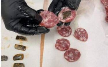 Lo scorso 5 gennaio erano già stati scoperti altri 120 grammi di droga nascosti sempre nelle fette di salsiccia. (ANSA).