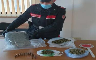 (ANSA) - BARI, 13 APR - Nascondeva in casa oltre un chilo di marijuana e munizioni. Un 21enne di Altamura è stato arrestato in flagranza dai carabinieri. I militari avevano fermato per un controllo un'auto con a bordo tre persone. Insospettiti dall'atteggiamento di uno dei tre, hanno deciso di eseguire una perquisizione domiciliare e, all'interno di un lavatoio, hanno trovato diversi sacchetti in cellophane contenenti complessivamente 1 chilo e 200 grammi di droga e un altro sacchetto che custodiva 28 cartucce per pistola. Il 21enne, disoccupato, è finito in carcere. Le indagini dei carabinieri proseguono per ricostruire la piazza di spaccio e individuare i destinatari dello stupefacente. Per il 21enne e per le altre due persone che erano a bordo dell'auto sono inoltre scattate le sanzioni anti-Covid. (ANSA).