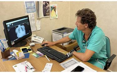 Una radiografia ha rivelato la presenza del corpo estraneo nelle vie aeree ed un addensamento con una polmonite circostante. "Si è palesata la possibilità che la signora - ha spiegato Cristiano Carbonelli, medico responsabile dell'Unità di Pneumologia Interventistica dell'Irccs ‒ avesse inalato un piccolo pezzo di protesi dentaria". "A questa ipotesi - ha aggiunto - corrispondeva la forma del corpo estraneo evidenziato dalla radiografia: due cuspidi dentali unite da un ponte sottostante che si localizzava nel polmone".