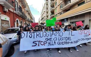 "Tentano di aprire inceneritori a Bari e riattivare centrali a carbone a Brindisi", spiegano i manifestanti. "Nelle scuole - proseguono - i presidi pretendono un abbassamento delle temperature nelle classi per tutelare gli interessi della grande finanza e delle multinazionali che inquinano. Non è colpevolizzando l'individuo che si risolve il problema del riscaldamento globale, ma organizzandosi e lottando collettivamente contro questo modello economico e produttivo".