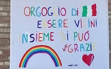 Un cuore, un arcobaleno, un tricolore e la scritta 'Orgoglio di essere vicini, insieme si può grazie'. E' lo striscione realizzato da due ragazzi di Ravenna, dipinto su tela e donato a sostegno del presidio ospedaliero.