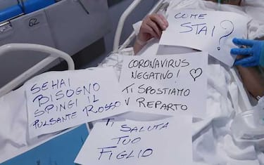 Cartelli scritti per chiedere come stanno o per aggiornarli sulle condizioni di salute, fino alle buone notizie: "Sei negativo al coronavirus!". Sono tornate a carta e penna le infermiere dell'ospedale di Pavullo, paese di di 18mila anime sull'Appennino modenese, che si sono ingegnate così per comunicare con i pazienti che sentono poco, ricoverati per coronavirus nei due reparti allestiti ah hoc (32 letti 'recuperati' sui 120 totali). Problemi di udito dei malati, ma anche perché la mascherina sulla bocca attenua il suono della voce del personale.