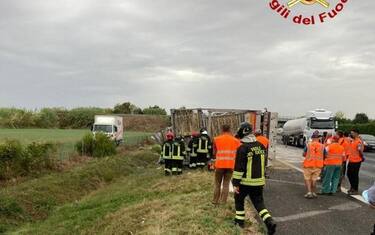 L'autoarticolato, con un carico di oltre 10mila animali, si è ribaltato con la motrice finita nella scarpata che costeggia la sede stradale, mentre il rimorchio ha bloccato le corsie di marcia.
