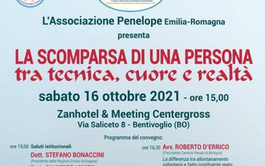 'La scomparsa di una persona, tra tecnica, cuore e realtà' è il titolo di un convegno, in programma il 16 ottobre a Bologna, organizzato da Penelope Emilia-Romagna, l'associazione che dal 2002 aiuta e assiste le famiglie degli scomparsi facendo anche da tramite con le istituzioni e con i media. "Si cercherà di andare oltre la cronaca che spesso si interessa di questi casi, per capire cosa c'è davvero dietro la scomparsa di un essere umano", ha spiegato l'avv. Barbara Iannuccelli, che fa parte di Penelope e assiste come legale le famiglie di diverse persone scomparse.