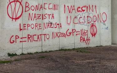 Alcune scritte contro il presidente della Regione Emilia-Romagna Stefano Bonaccini e il sindaco Matteo Lepore sono comparse, nella notte, su un muro dei palazzi della Regione, a Bologna. "I vaccini uccidono", si legge tra le altre scritte, che riportano anche la dicitura "nazista" di fianco ai nomi di Bonaccini e Lepore e definiscono "ricatto nazista" il Green pass.