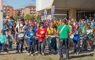 Prima della partenza, 500 partecipanti alla manifestazione, i primi ad essersi iscritti, hanno formato un grande '#hashtag', simbolo della Bicipolitana, con indosso le magliette dei quattro colori del logo della Bicipolitana (arancio, verde, azzurro e fucsia). Il corteo colorato di 3mila persone ha attraversato tutta la città per poi rientrare in piazza Lucio Dalla. (ANSA).