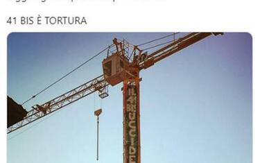 Dall'alto della gru pende un lunghissimo striscione in cui è scritto 'il 41bis uccide', 'Alfredo libero, tutti liberi' e 'Morte allo Stato'.
