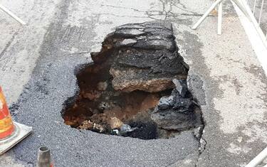 Sono intervenuti i vigili del Fuoco e la Polizia municipale, che ha transennato la zona e chiuso la strada alcuni metri prima in attesa che vengano avviati i lavori per riparare la strada.