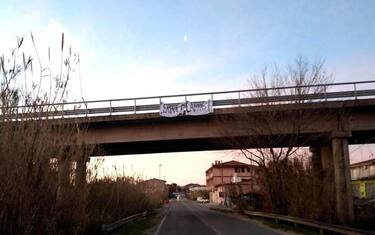 Appeso lenzuolo con nomi e croci sul cavalcavia