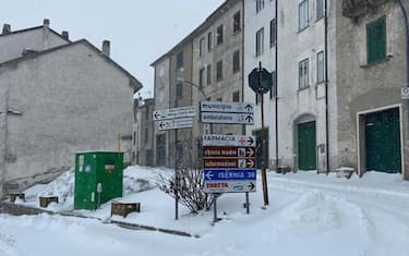 (ANSA) - CAPRACOTTA, 13 FEB - Bufera di neve a Capracotta (Isernia) e colonnina di mercurio giù fino a meno 11 gradi. La coltre bianca ha raggiunto oltre 20 centimetri di altezza in paese, ma le strade sono deserte per le restrizioni dovute alla pandemia.