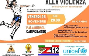 (ANSA) - CAMPOBASSO, 18 NOV - Un triangolare di pallavolo femminile per celebrare la 'Giornata internazionale per l'eliminazione della violenza contro le donne'. Il 25 novembre, alle 20, al Palazzetto del Cus Molise a Campobasso, 'Una schiacciata alla violenza', iniziativa promossa dal coordinamento regionale dell'Associazione 'ConDivisa - Sicurezza e giustizia'', con il patrocinio dell'Unimol, Consigliera di Parità di Campobasso e Isernia e la partecipazione del Comitato regionale Unicef, Associazione nazionale Polizia di Stato (Anps), 'Amici del 112' e Società sportiva 'Nuova Pallavolo' di Campobasso. Sul parquet del Palaunimol, una rappresentanza di studentesse del corso di laurea di Scienze del servizio sociale, insieme alle allieve che frequentano i corsi nelle Scuole di formazione della Polizia e Carabinieri di Campobasso. "Come sottolineato dal Consiglio dell'Unione Europea - evidenziano gli organizzatori - lo sport è innanzitutto fonte e motore di inclusione sociale e viene riconosciuto come uno strumento eccellente per l'integrazione delle minoranze e dei gruppi a rischio di emarginazione sociale". (ANSA).